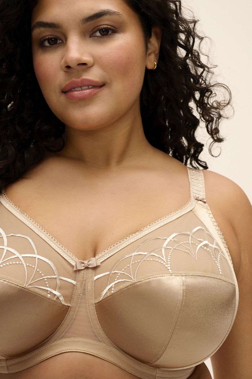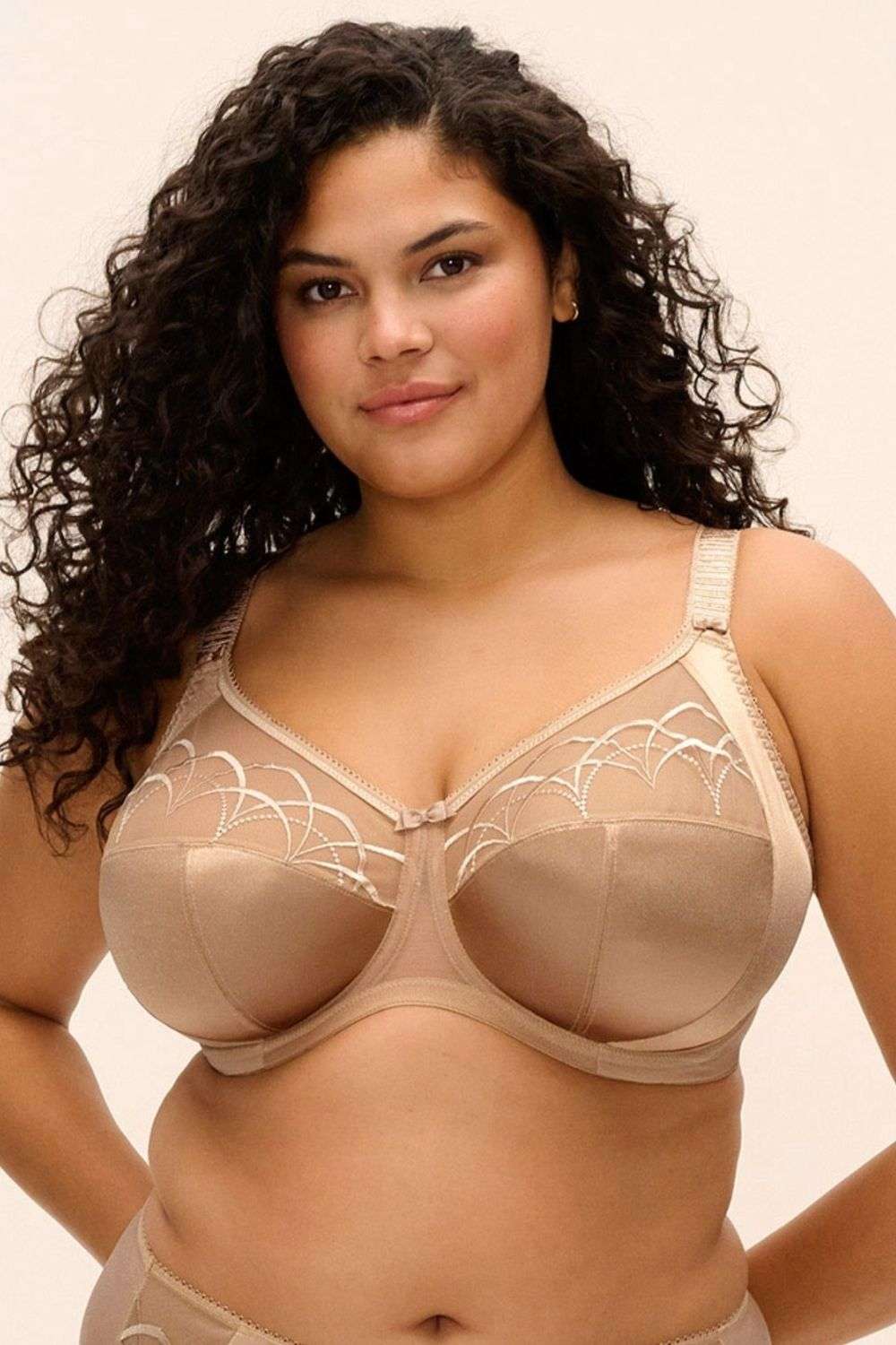 Experience ultimate comfort and support with the Elomi Cate Full Cup Banded Bra, featuring a three-section cup design, underwire support, and beautiful sheer embroidery for a perfect blend of style and functionality.