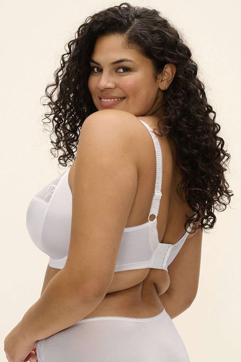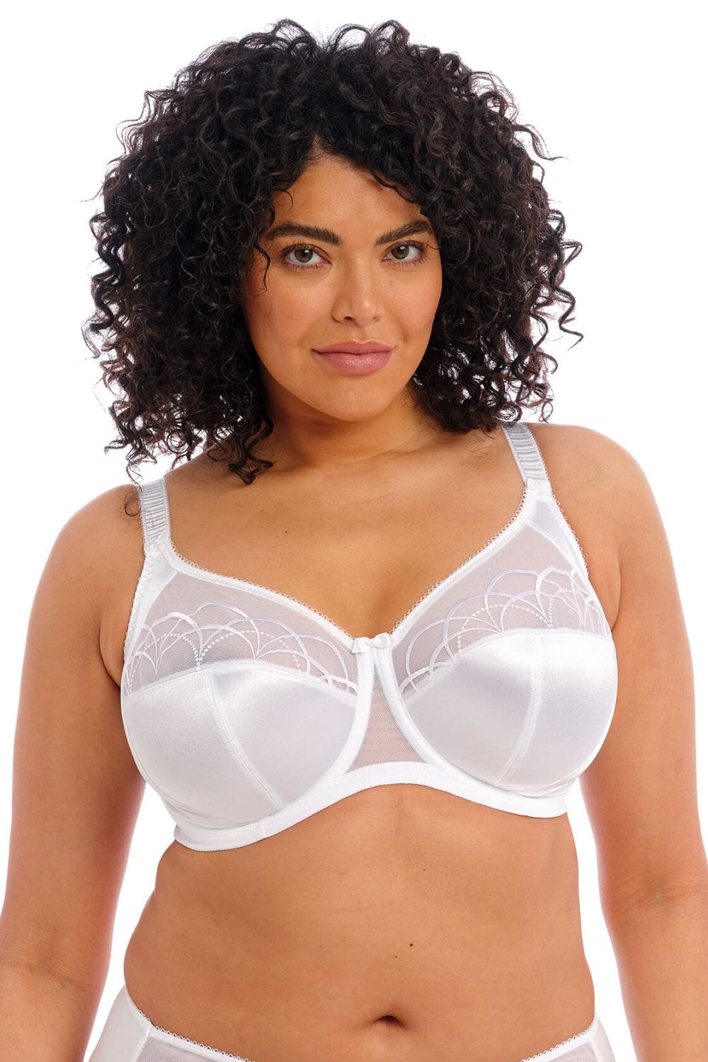 Experience ultimate comfort and support with the Elomi Cate Full Cup Banded Bra, featuring a three-section cup design, underwire support, and beautiful sheer embroidery for a perfect blend of style and functionality.