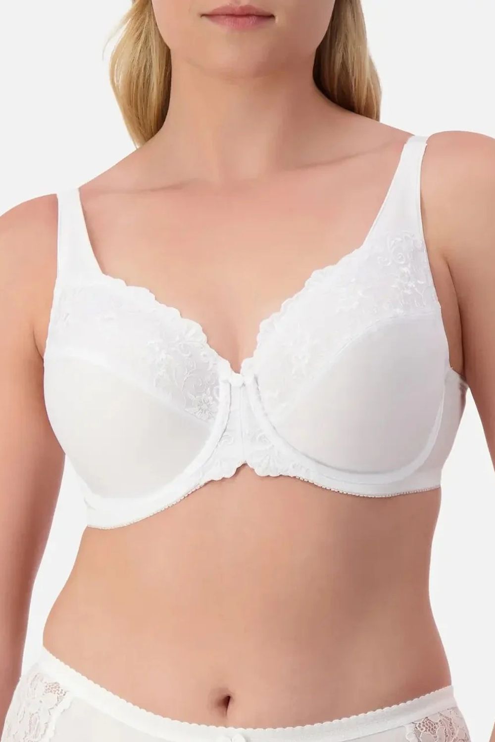 The Embroidered Minimiser Bra is perfect for D-G cups wanting to reduce bust appearance by a cup size.