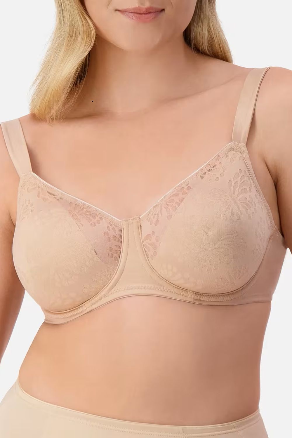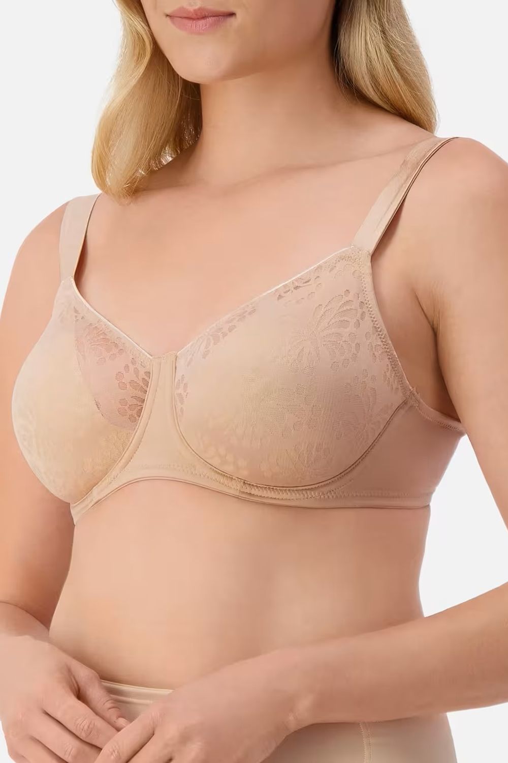 The Lacy Minimiser Bra is the perfect bra for C-G cups wanting to reduce bust appearance by a cup size.